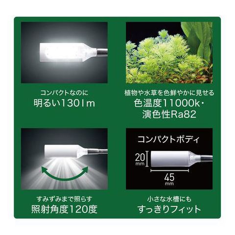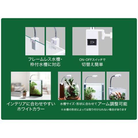 ●ボトルアクアやテラリウムを明るく照らす。ボトルアクアやテラリウム等の小型容器に最適なコンパクト&スタイリッシュLED。