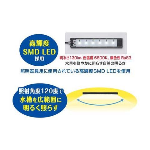 ●高輝度SMD LED採用。自然な明るさで魚や水草を美しく魅せる。