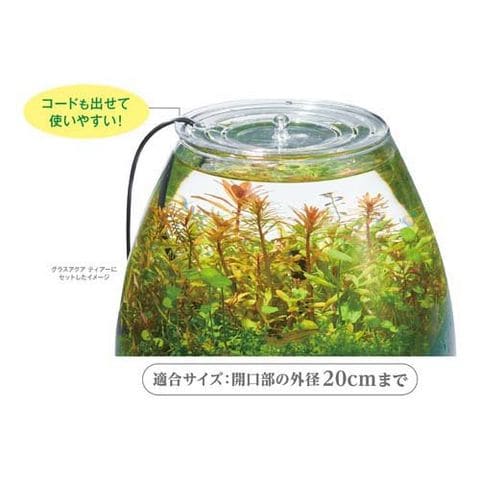 ●グラスアクアや金魚鉢等の円形水槽の開口部に乗せて、水の蒸発を抑え、魚の飛び出しを防止するプラスチックフタです。