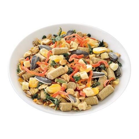 | ペレット(コーンミール、小麦粉、ふすま、きな粉、脱脂糠、植物性発酵飼料、玄アワ、小麦胚芽、アルファルファミール、キヌア、白エゴマ、キビシボリ、イヌリン、チキンミール、ビタミン類(A、D3、E、K3、B1、B2、B6、B12、ニコチン酸、パントテン酸カルシウム、イノシトール、葉酸、C、コリン)、ミネラル類(硫酸マンガン、硫酸鉄、硫酸銅、硫酸コバルト、 硫酸マグネシウム、炭酸亜鉛、ヨウ素酸カルシウム、炭酸カルシウム)、並塩、トコフェロール)、圧ペンとうもろこし、圧ペン大麦、えん麦、リンゴ、ヒマワリの種、ニンジン、ダイコンの葉 |