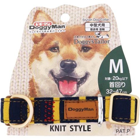 【Doggy's Tailor ドッグカラー くびわ M ニットスタイル イエロー/ネイビーの商品詳細】