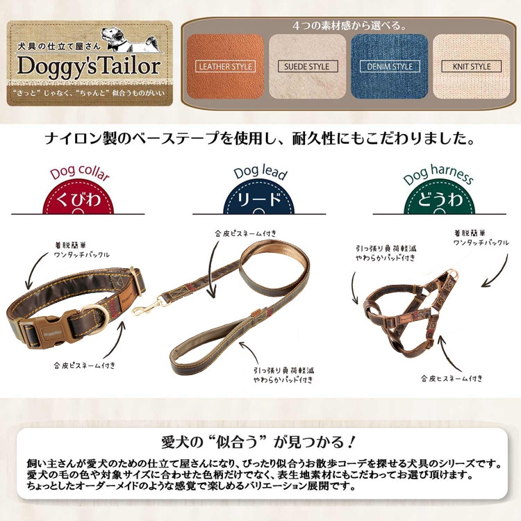 【Doggy's Tailor ドッグカラー くびわ L レザースタイル ブラウンの商品詳細】