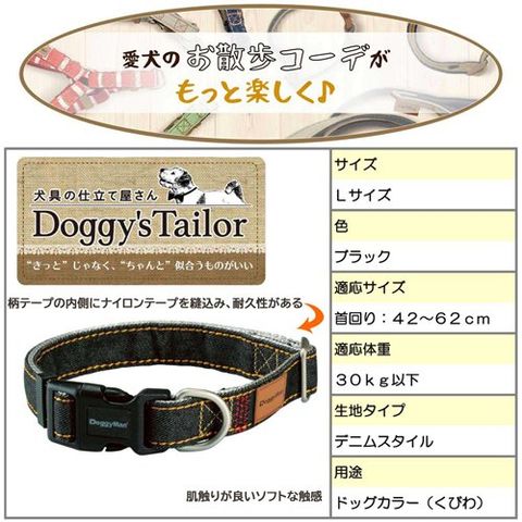【Doggy's Tailor ドッグカラー くびわ L デニムスタイル ブラックの商品詳細】