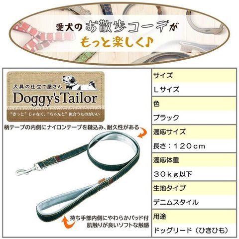 【Doggy's Tailor ドッグリード ひきひも L デニムスタイル ブラックの商品詳細】
