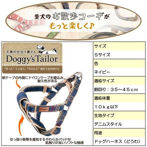 【Doggy's Tailor ドッグハーネス どうわ S デニムスタイル ネイビーの商品詳細】