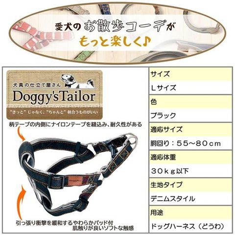 【Doggy's Tailor ドッグハーネス どうわ L デニムスタイル ブラックの商品詳細】