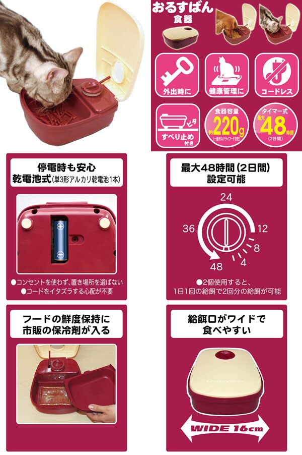 ●食器容量は標準的なドライフードで約220g※水やウェットフードは入れないでください対象体重約8kg室内用