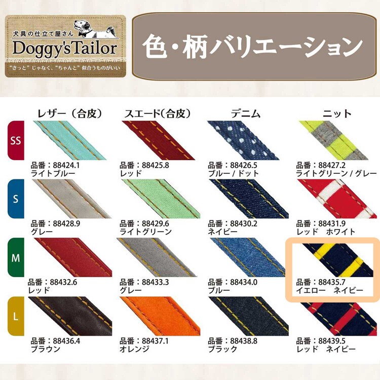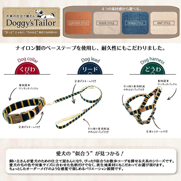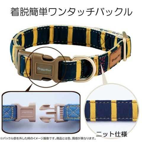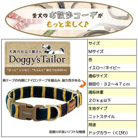 【Doggy's Tailor ドッグカラー くびわ M ニットスタイル イエロー/ネイビーの商品詳細】