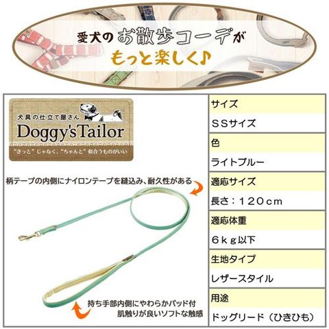 【Doggy's Tailor ドッグリード ひきひも SS レザースタイル ライトブルーの商品詳細】