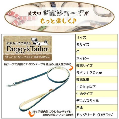 【Doggy's Tailor ドッグリード ひきひも S デニムスタイル ネイビーの商品詳細】