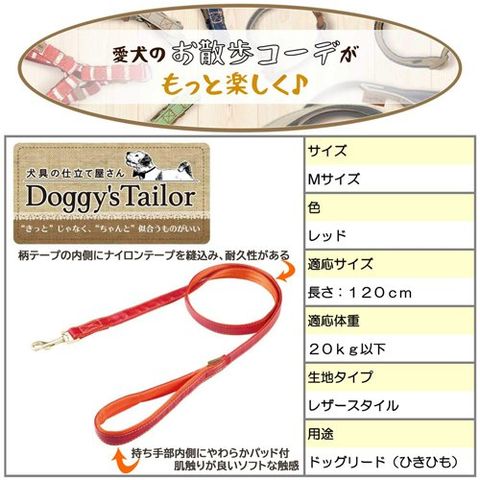 【Doggy's Tailor ドッグリード ひきひも M レザースタイル レッドの商品詳細】