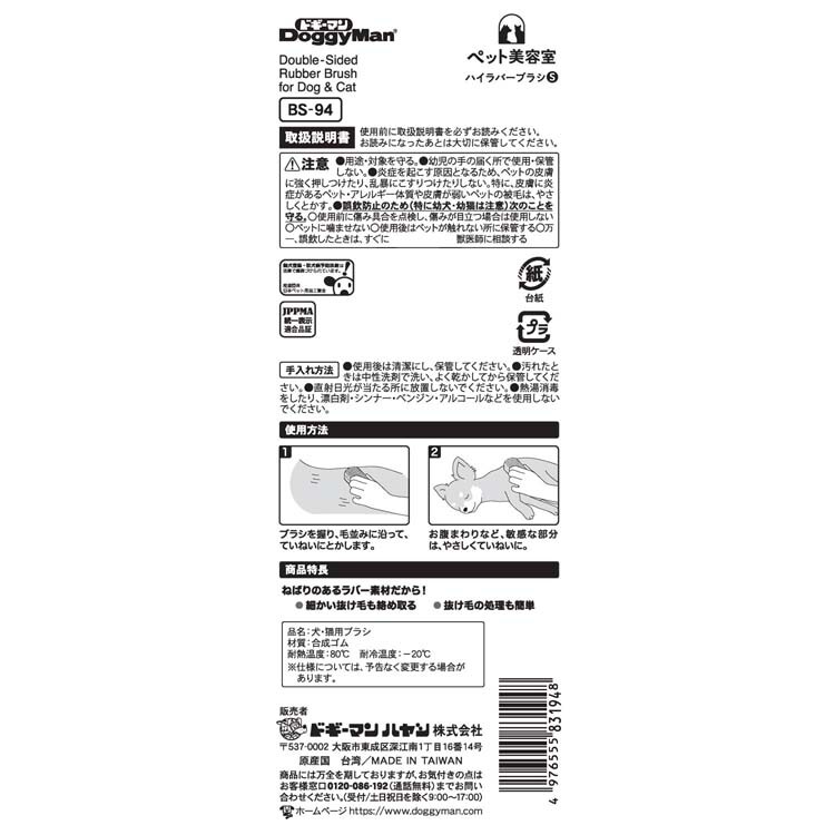 【ペット美容室 ハイラバーブラシ Sの商品詳細】