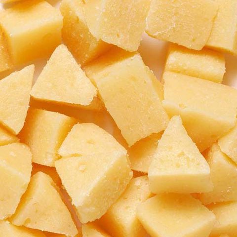 チーズ、でん粉類、小麦粉、ゼラチン、植物油脂、グリセリン、ミネラル類(カルシウム)、プロピレングリコール、増粘多糖類、保存料(ソルビン酸カリウム、デヒドロ酢酸ナトリウム)、酸味料、乳化剤、着色料(β-カロテン、酸化チタン)、酸化防止剤(エリソルビン酸ナトリウム)、香料