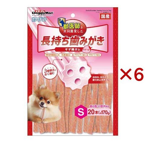 ドギーマン ホワイデント 長持ち歯みがき ギザ棒ガム イチゴ味 S (20本入×6セット)