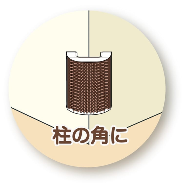 ●柱や壁の直角やフラットな面など、いろいろな場所に取り付けることができる猫ちゃん用セルフグルーミングブラシ。