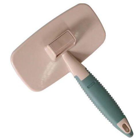 ●愛犬・愛猫の抜け毛取りブラシ。被毛をやさしくほぐしてかき取る。取れた抜け毛の処理は簡単ワンプッシュ。