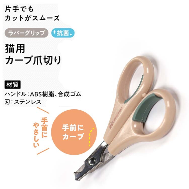 ●刃先を見やすく、切りやすい、刃先を手前にカーブさせた猫用爪切り。