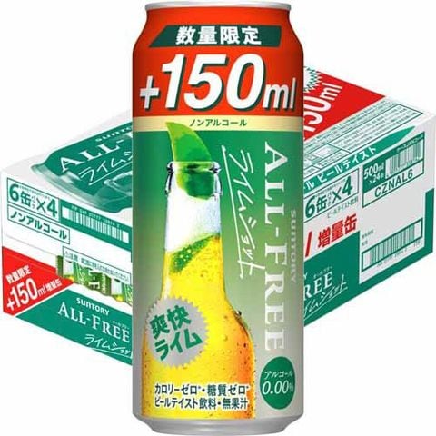 サントリー ノンアルコールビール オールフリー ライムショット 増量缶 (24本入×4セット(1本500ml))