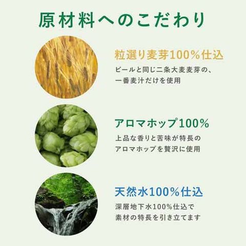 ●粒選り麦芽100%、アロマホップ100%を使用し、天然水100%で仕込むことで素材の特長を引き立てました。