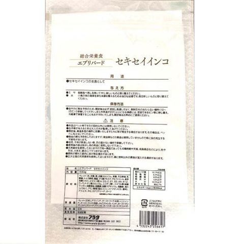 | 粗タンパク10.1%以上、粗脂肪:6.5%以上、粗繊維:4.0%以下、粗灰分:1.6%以下、水分:10.5%以下、炭水化物:62.7% |