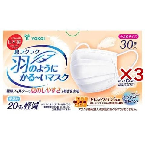息ラクラク羽のようにかる~いマスク小さめ (30枚入×3セット)
