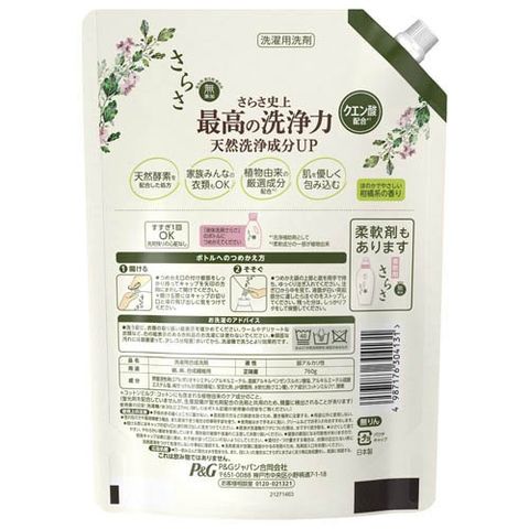 【さらさ 洗濯洗剤 液体 ほのかでやさしい柑橘系の香り 詰め替え 760gの商品詳細】