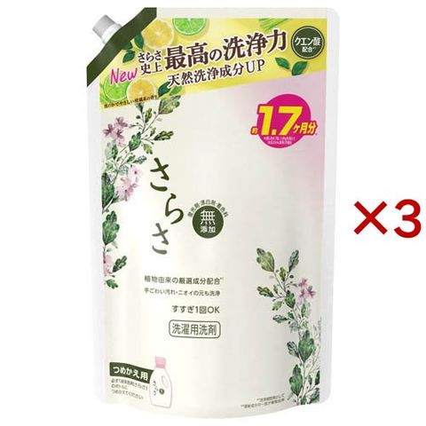 さらさ 洗濯洗剤 液体 ほのかでやさしい柑橘系の香り 詰め替え 1260g (1260g×3セット)