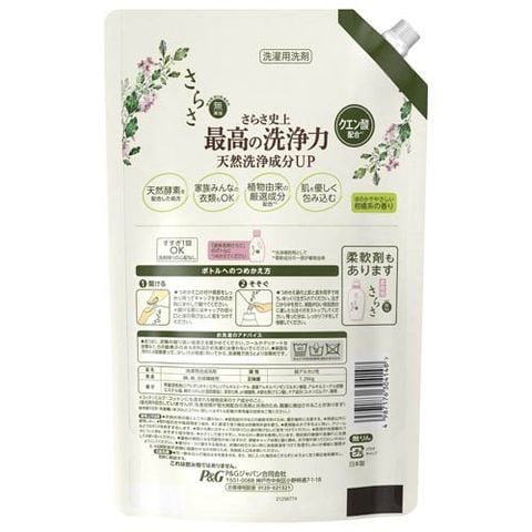 【さらさ 洗濯洗剤 液体 ほのかでやさしい柑橘系の香り 詰め替え 1260gの商品詳細】