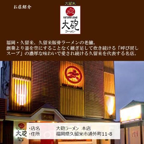 | 大砲(とんこつ)/28g×4食、信玄(味噌)/31g×4食、坂内(醤油)/21g×4食 計3種12食 |
