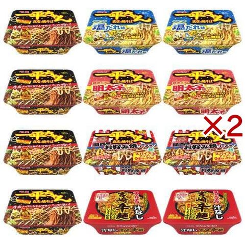 | ソース味/135g×4食、塩だれ味/130g×2食、明太子味/127g×2食、お好み焼ソース味/122g×2食、チャルメラ汁なし宮崎辛麺/109g×2食 計5種12食 |