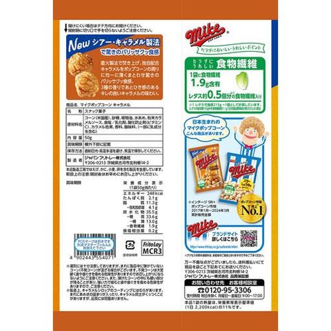 | コーン(米国産)、砂糖、植物油、水あめ、粉末カラメルソース、食塩/乳化剤、酸化防止剤(ビタミンC)、カラメル色素、香料、酸味料、(一部に乳成分を含む) |