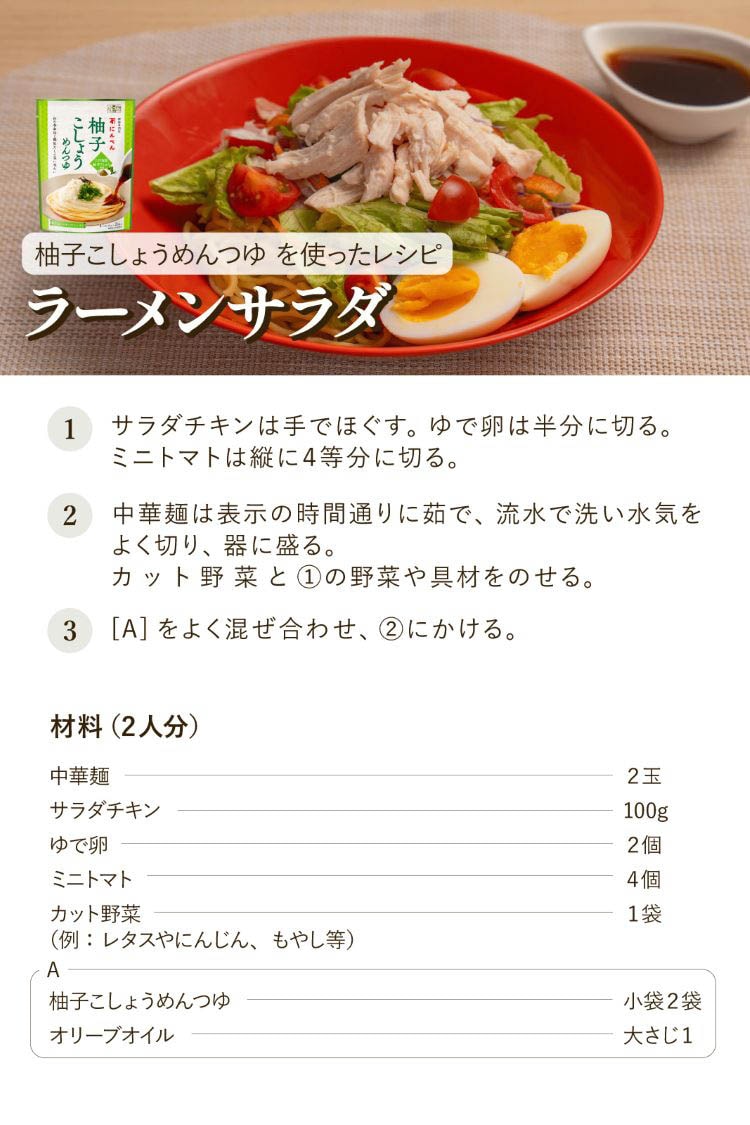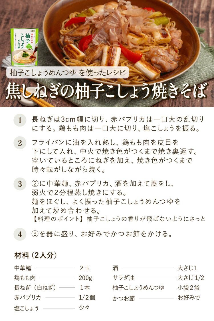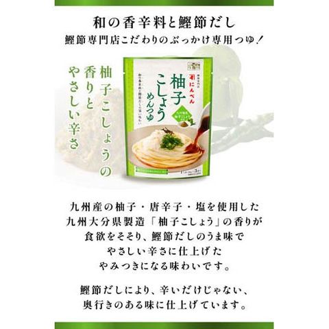 ●九州産の柚子・唐辛子を使用した柚子こしょうの香りと優しい辛さのめんつゆです。