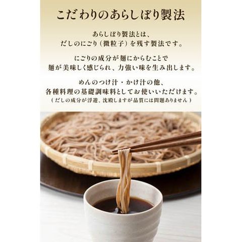 ●こだわりのあらしぼり製法※あらしぼり製法は、だしのにごり(微粒子)を残す製法です。にごりの成分が麺にからむことで麺が美味しく感じ、力強い味を生み出します。
