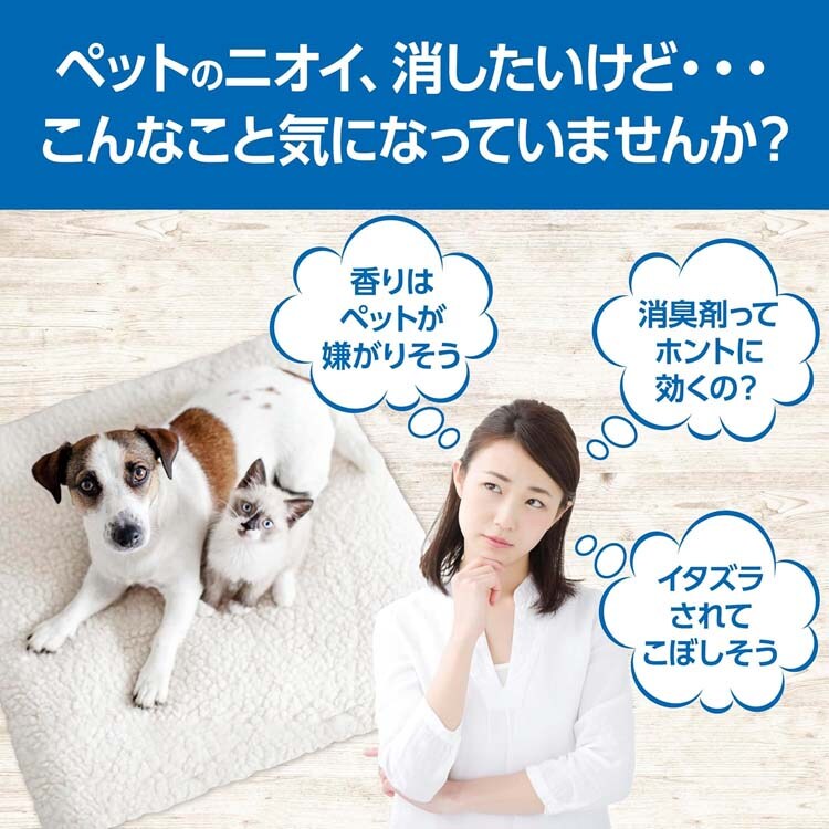 ●「ペット用無香空間TM」は、ペットの体臭やトイレ臭に特化した専用処方で、気になるニオイを効果的に消臭。