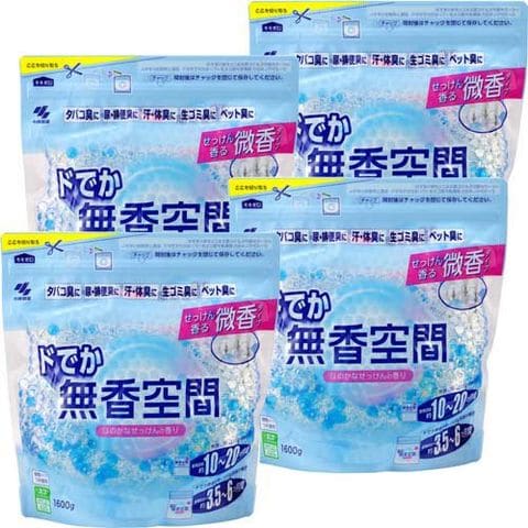 無香空間 消臭ビーズ ドでか ほのかなせっけん 微香タイプ つめ替用 (1600g×4セット)