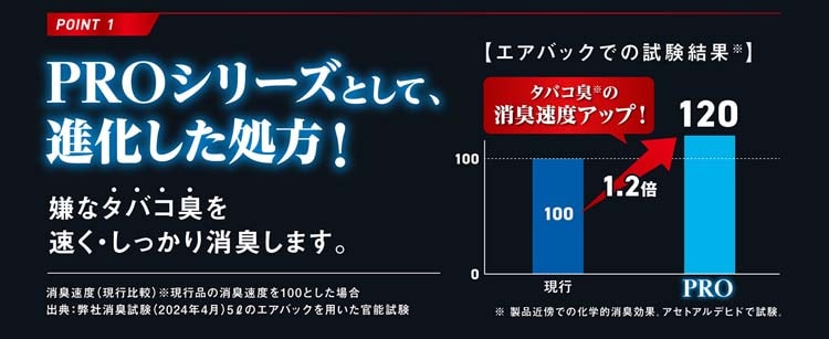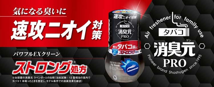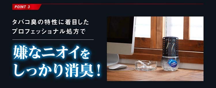 ●タバコ臭に効果的な消臭成分配合で、タバコ特有のニオイを消臭します。(効果は使用環境により異なります)