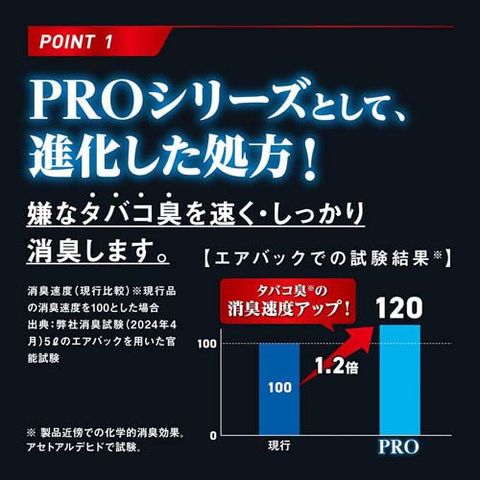 ●タバコ臭に効果的な消臭成分配合で、タバコ特有のニオイを消臭します。(効果は使用環境により異なります)