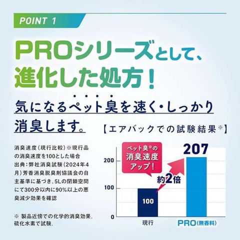 ●ペットの糞尿臭・体臭に効果的な消臭成分配合で、ペット特有のニオイを消臭します。(効果は使用環境により異なります)
