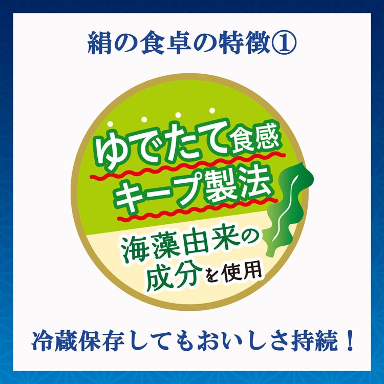 ●ゆでたて食感キープ製法(海藻由来の成分を使用)。
