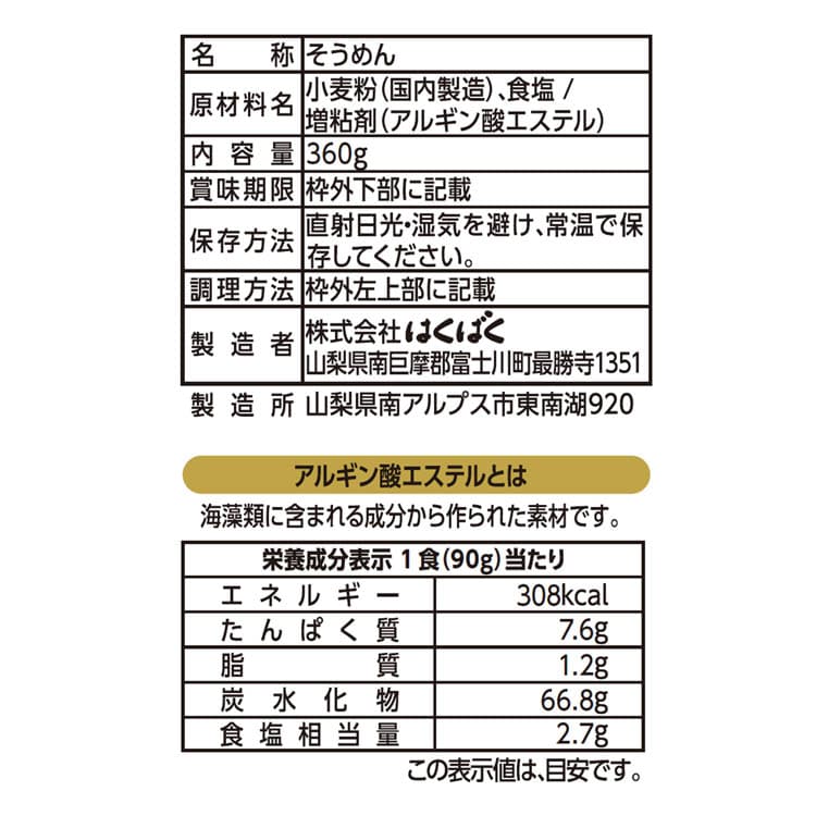 | 小麦粉(国内製造)、食塩/増粘剤(アルギン酸エステル) |