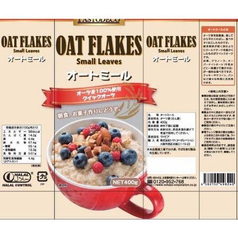 | 100g当たり エネルギー:364kcal、たんぱく質:14.2g、脂質:6.9g、炭水化物:67.4g(糖質:55.1g、食物繊維:12.3g)、食塩相当量:0.01g、発酵性食物繊維(βグルカン):4.4g |