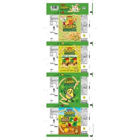 | 小麦粉(国内製造)、植物油、じゃがいも、じゃがいもでん粉、乾燥じゃがいも、コーンスターチ、砂糖、ほうれんそう、食塩、上新粉、にんじん、ピーマン、かぼちゃパウダー、トマトペースト、オニオンパウダー、赤ピーマンペースト、レッドビートパウダー、たん白加水分解物、デキストリン / 調味料(アミノ酸等)、トレハロース、pH調整剤、甘味料(甘草)、酸化防止剤(ビタミンE) |