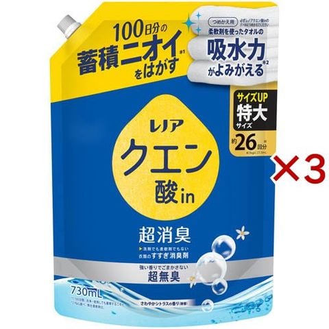レノア クエン酸in 超消臭 衣類のすすぎ消臭剤 さわやかシトラス 微香 詰め替え 特大 (730mL×3セット)