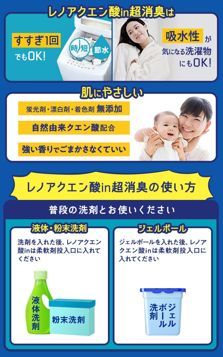 【レノア クエン酸in 超消臭 衣類のすすぎ消臭剤 部屋干し フレッシュグリーン 詰替の商品詳細】