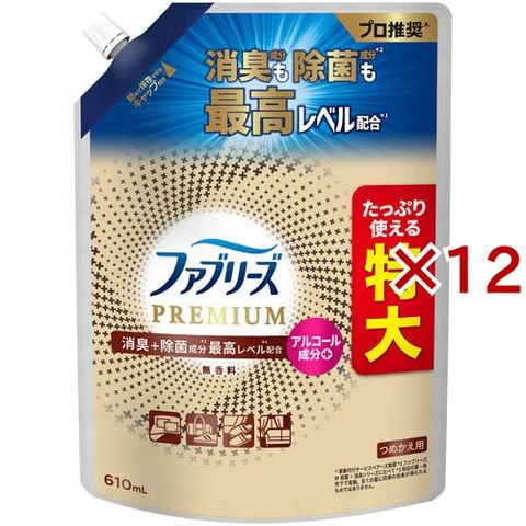 ファブリーズ PREMIUM 消臭スプレー 布用 アルコール成分+ 無香料 詰め替え (610mL×12セット)