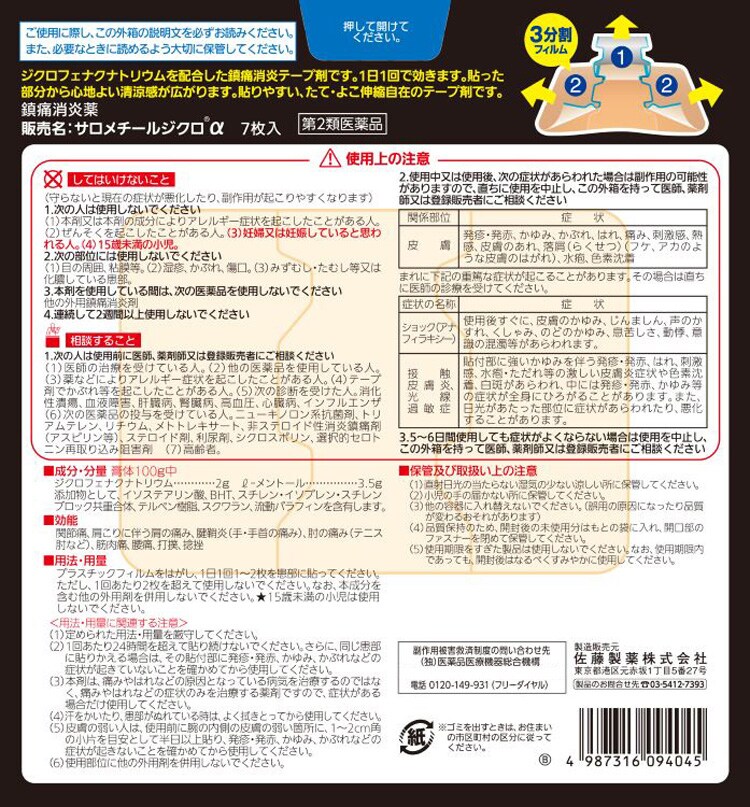 ●ジクロフェナクナトリウム2.0%を配合した鎮痛消炎テープ剤です。