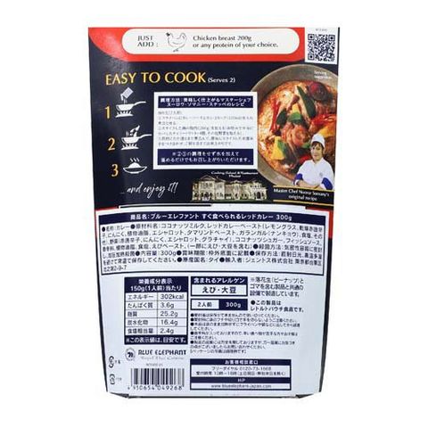 | ココナッツミルク、レッドカレーペースト(レモングラス、乾燥赤唐辛子、にんにく、植物油脂、エシャロット、タマリンドペースト、ガランガル(ナンキョウ)、食塩、その他)、 野菜(赤唐辛子、にんにく、エシャロット、グラチャイ)、ココナッツシュガー、フィッシュソース、香辛料、植物油脂、食塩、えびペースト、(一部にえび・大豆を含む) |