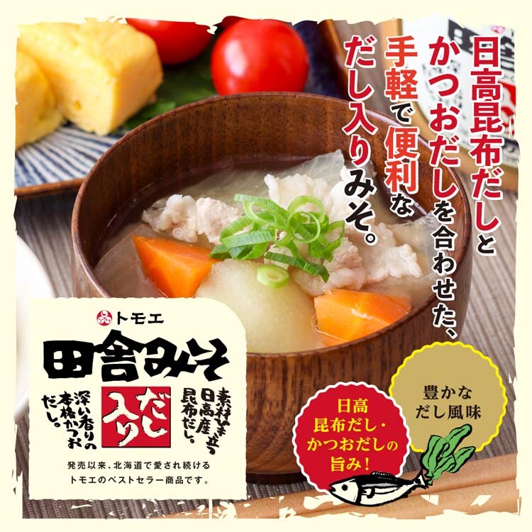 ●日高昆布だしとかつおだしを合わせた、手軽で便利なだし入りみそです。