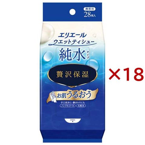 エリエール ウエットティシュー 純水タイプ 贅沢保湿 携帯用 (28枚入×18セット)