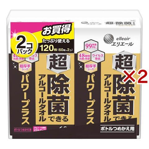 エリエール 超除菌できるアルコールタオル パワープラス ボトルつめかえ用 (2個入×2セット(1個60枚))